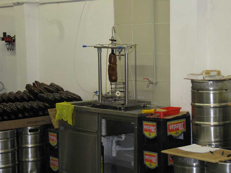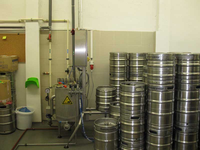 Prohlédli jsme si rovněž stáčecí zařízení na PET lahve (stáčení pod CO2), a parní zařízení na čištění KEG sudů.